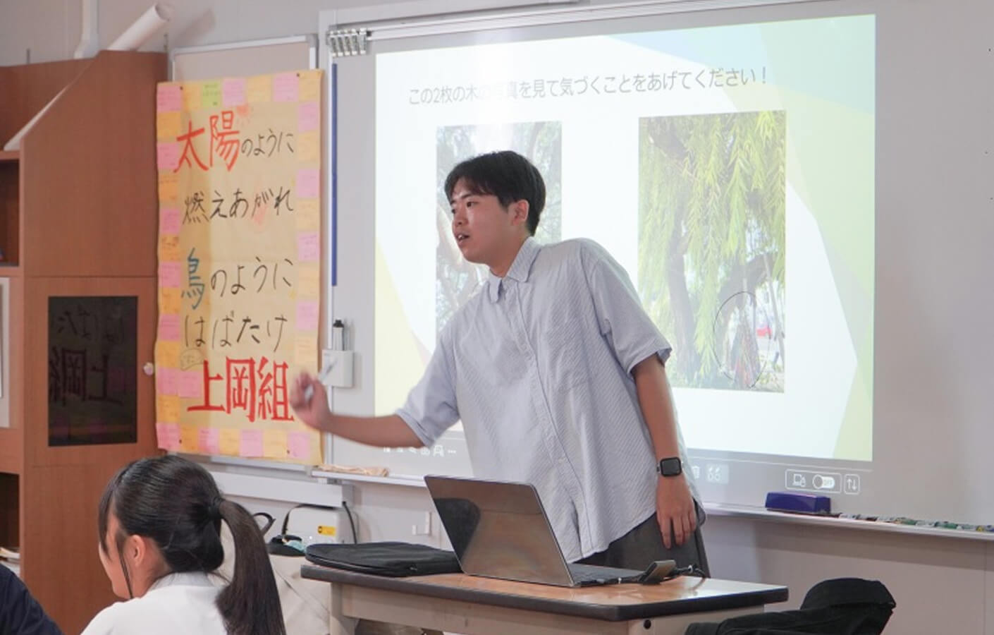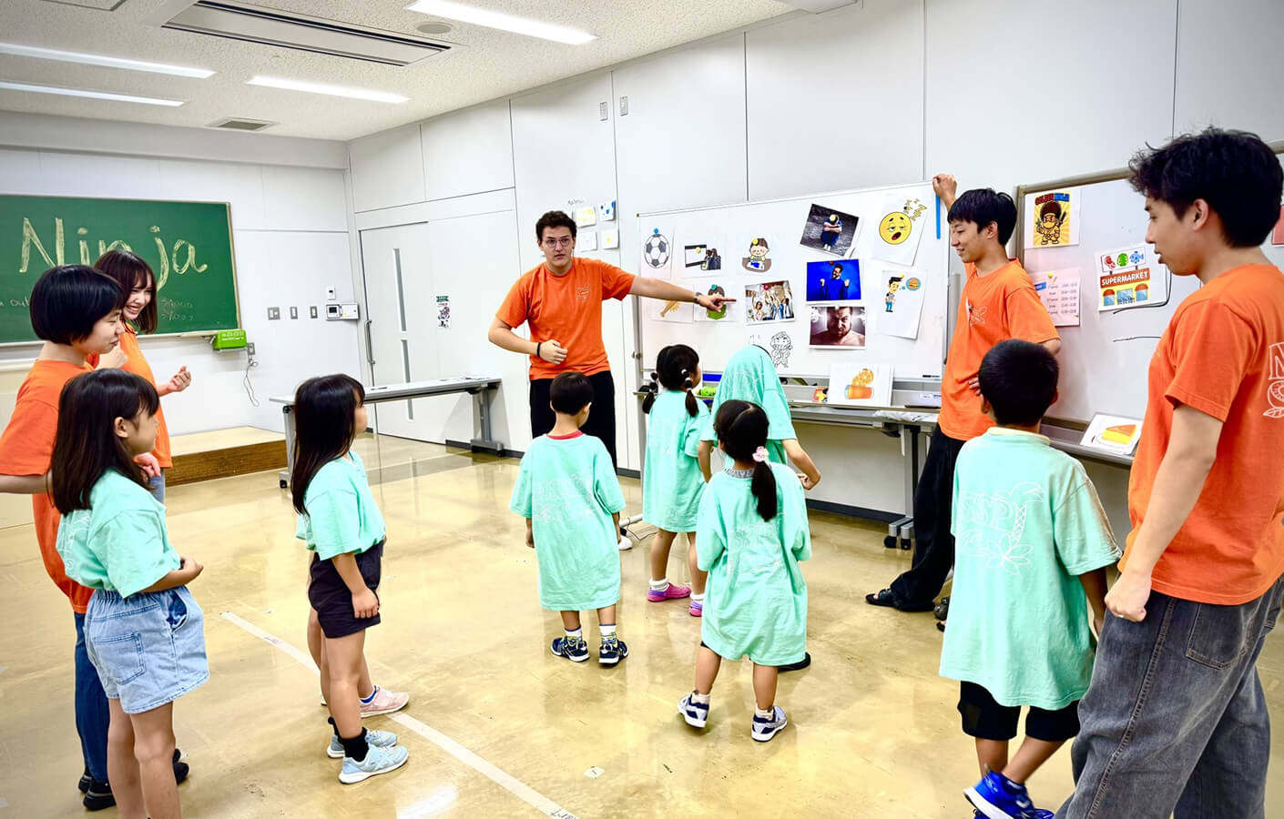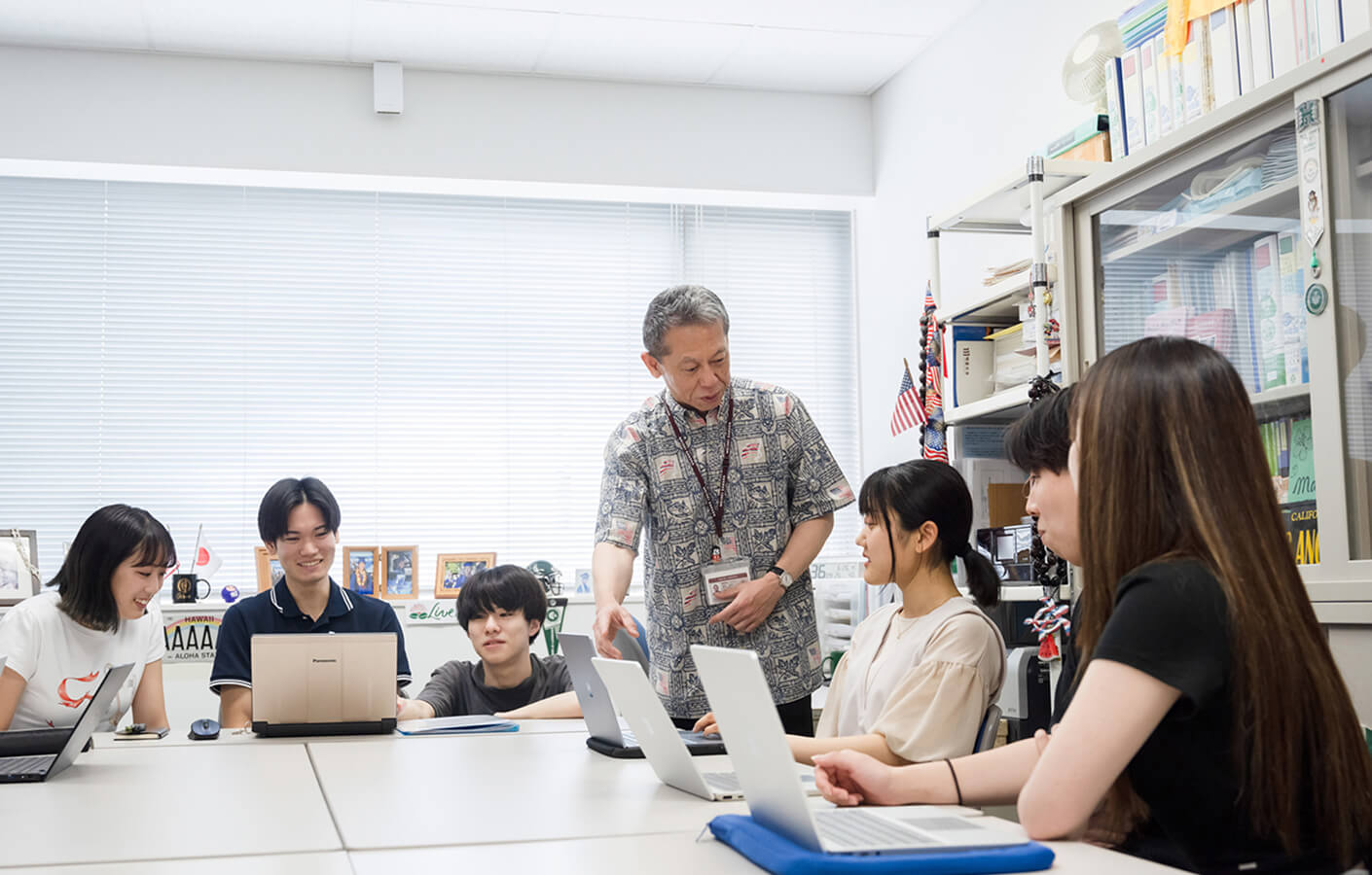 国際コミュニケーション学科の学びを象徴するこの授業では、夏休みに留学生とチームを組み、日野市近隣の小中学生に英語を教える活動を行います。授業づくりから模擬授業、実際の指導までを経験しながら、語学力だけでなく、異文化理解や協働力、責任感も育まれます。ワーキングランゲージは英語で進められ、海外の学生との交流も魅力のひとつです。失敗を恐れず、自分の考えを堂々と伝える力を身につけることが目標で、教職を目指す人はもとより、国際交流に興味がある人にもぴったりの実践的でやりがいのある授業です。