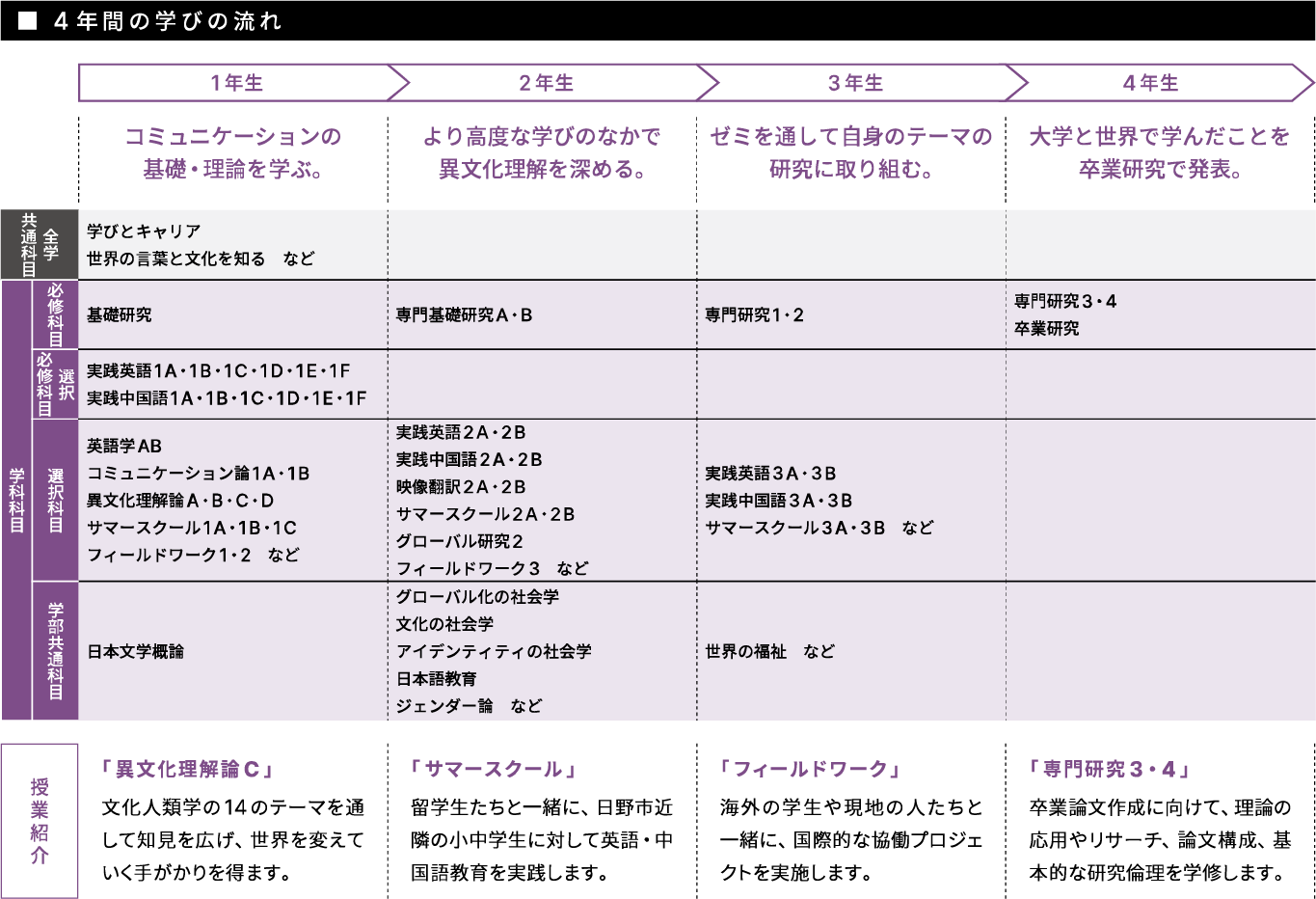 大学4年間の学びを総括し、自分で選んだテーマを深く追究して卒業論文を完成させるこの授業では、社会や文化、言語など幅広い分野から関心のある課題を見つけ、文献調査やフィールドワークを通じて分析を行います。自分の視点で問題を考え、論理的にまとめることで、思考力・判断力・表現力を総合的に高めます。研究倫理や発表方法も学びながら、主体的に取り組むこの卒業研究は、大学生活の集大成であり、自分だけの「作品」をつくり上げる貴重な経験となります。