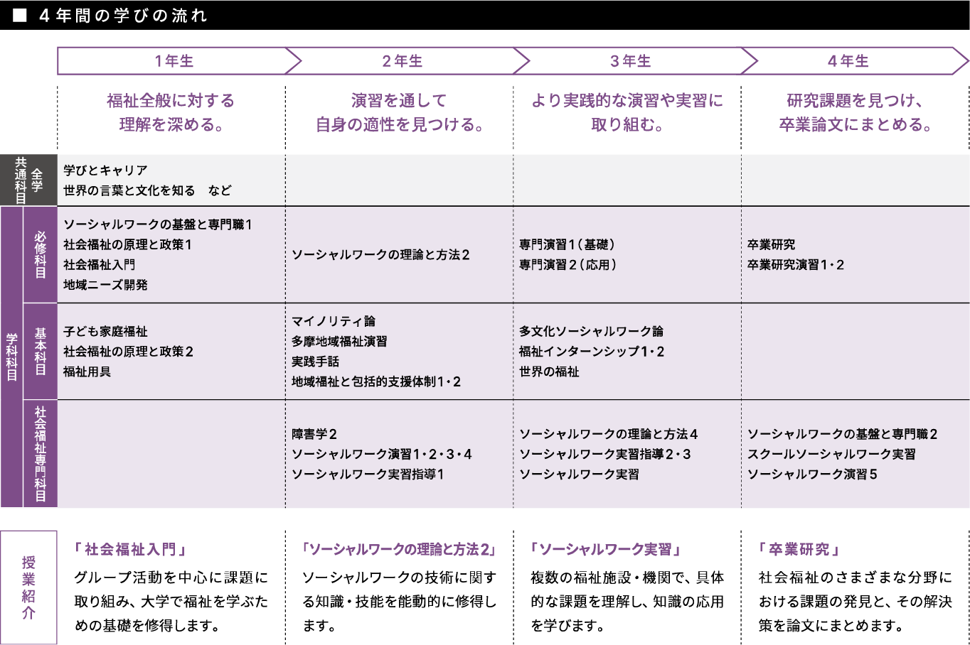 大学での学びの集大成として、自分なりのテーマを見つけ、掘り下げ、問いを立てて、調査・分析を行いながら、卒業論文を完成させます。教員やゼミの仲間に助言をもらいながら、文献購読、フィールドワーク、アンケートなどで地道に集めた資料を基に多角的に考え、説得力をもって人に伝わる文章を書く力を磨いていきます。完成した卒業論文は、発表する機会も設けています。卒業論文に取り組むことを通じて、社会と積極的に向き合う「主体性」、他者と協働する「社会性」、多様な考え方を受け入れる「柔軟性」を身につけ、自分の人生を不断にデザインする土台を築いていきます。